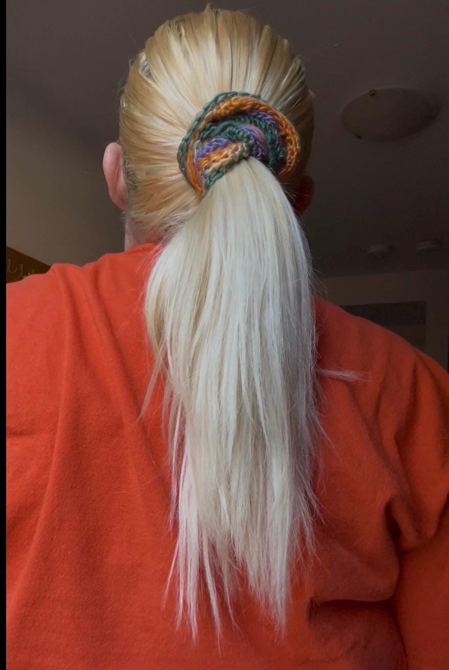 I made these crochet scrunchies as a way to keep my hands busy so I can focus.