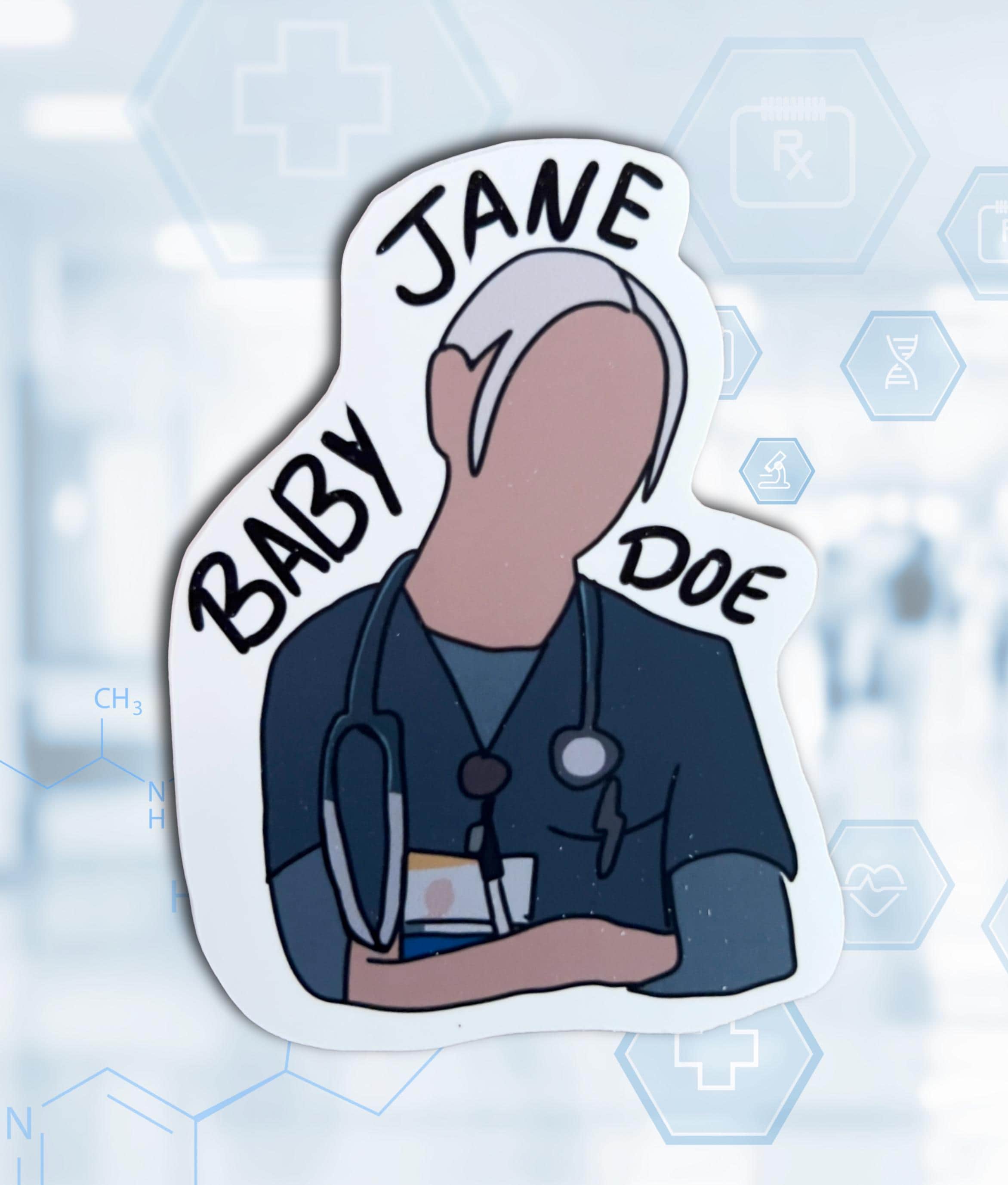 Show you're Pitt pride with a hand drawn sticker! Each sticker was hand drawn in house and includes an iconic line said by the character. Make sure everyone in your life knows that Baby Jane Doe is doing good and taking formula well.
